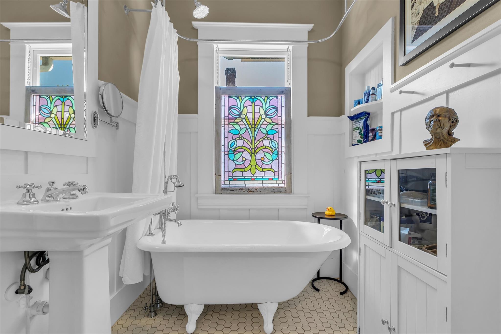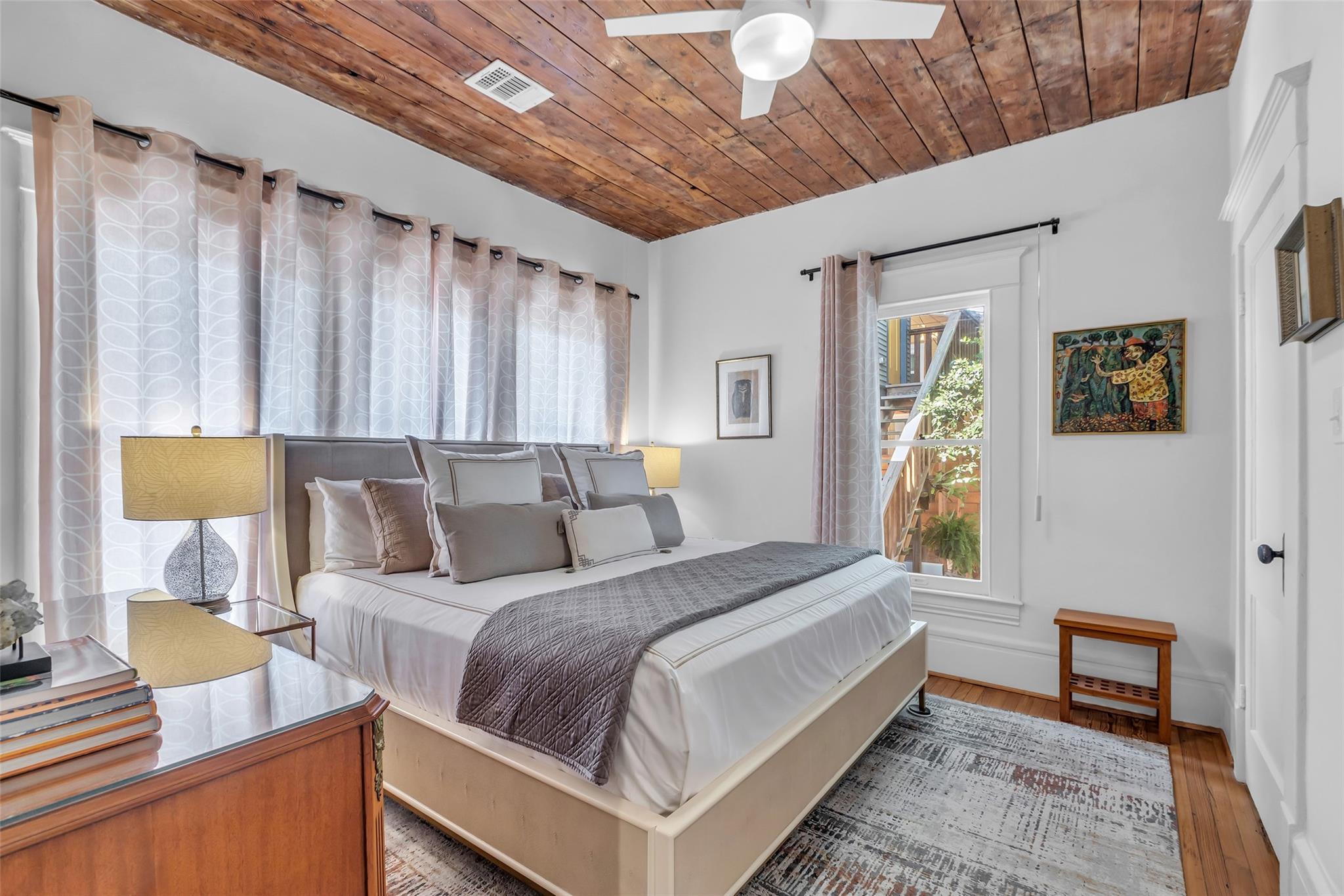 Charming Montrose Craftsman bungalow located on a picturesque block lined w/majestic oaks. The inviting covered front porch welcomes you to the 2-bed, 1.5-bath 1339' home filled w/stunning original woodwork, exposed shiplap walls & gleaming hardwood floors. Spacious living room flows seamlessly to the dining area, perfect for relaxing or entertaining. Fantastic island kitchen with stainless appliances, site-built cabinetry including enormous panty, and sun filled breakfast room. Thoughtful updates throughout, including updated plumbing, electrical, & HVAC system & ducting. Fully fenced 5,000 SF lot offers amazing New Orleans style backyard patio perfect for outdoor living. Enjoy unbeatable walkability to Montrose's vibrant dining, art, & nightlife. One mile to Buffalo Bayou's hike & bike trails, & just a few miles to Downtown, Museum District, and Med Center areas. Walkable to over 24 restaurants. Just Schedule your showing today & make this timeless retreat your own. Truly a MUST SEE!